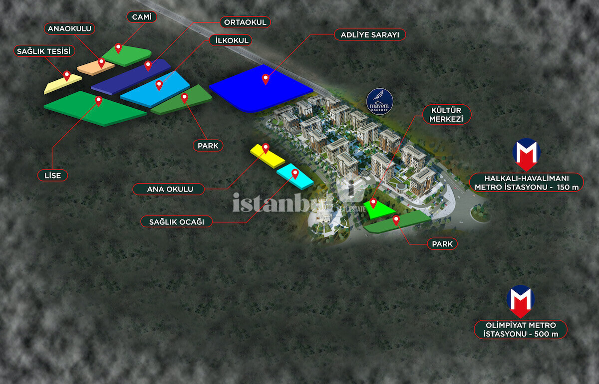 Mavera Comfortis a new residential real estate project in Basaksehir Istanbul where many investment opportunities with a variety of property for sale. The construction company tried its best to bring comfort to the prospective residents.Design, facilitites and amenities of the project feature high level of comfort. Earthquake insulation technology is used in the project which ensure the safety of its residents in the hard times. If you are looking for new property for sale in Turkey, you probably should consider Mavera Comfort project.